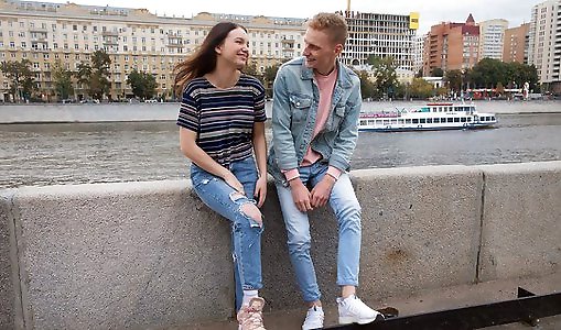 Youthfull Russian nymph lured by a pickup camper and had orgy with a fresh fr...