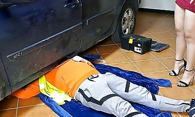 Big ass girl boss let janitor took her g-string off and eat her pussy