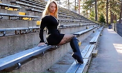 Skinny hairy blonde Mature with huge tits in high stilettos
